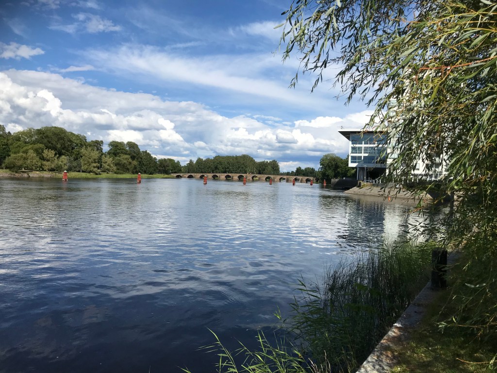 Några timmar efter Dalaborg anlände vi till Karlstad, lite av Värmlands huvudstad om jag förstått det rätt. Det är väl knappast utan anledning som den är residensstad Värmlands län, stiftstad för Karlstads stift samt universitetsstad sedan 1999. Här finns exempelvis olika lärareutbildningar. Staden grundades 1584 av Karl IX, därav namnet Karlstad. (Den gamla stavningen var Carlstad.) Sedan vikingatiden hade Karlstad(då Tingvalla)varit en viktig handelsstad strategiskt placerad vid norra delen av Vänern. Dessutom i mitten av sjön. En god lunch intogs på en av stadens restauranger, solen sken och det gick att sitta ute. Inte långt från restaurangen fanns en staty av nationalskalden Gustaf Fröding(1860-1911). Fröding verkade i staden 1885-94 som journalist. Under Karlstadtiden skrevs några av hans mest kända dikter. Karlstad är en trevlig stad att strosa runt i, den känns som en storstad och mellanstor stad på samma gång. Cirka 65.273 människor bor här, 20:e största tätorten i landet. De centrala delarna av Karlstad(historiskt centrum)byggdes från 1865 i så kallat rutnätsmönstet. Typiskt för detta är breda gator och ett stort torg. Just detta år var det nämligen en stor stadsbrand. Jag var mycket nöjd med vistelsen i Karlstad. Dessvärre hanns inga museibesök med. Här ligger såväl Lars Lerins konstmuseum Sandgrund samt Värmlands museum. Jag får återvända hit fler gånger. Med denna text hoppas jag ha sått ett frö hos er som ännu inte besökt staden till att göra det. För er som varit här förr, åk gärna till Karlstad igen, det är en magisk stad med närhet till skogar och vattendrag!
