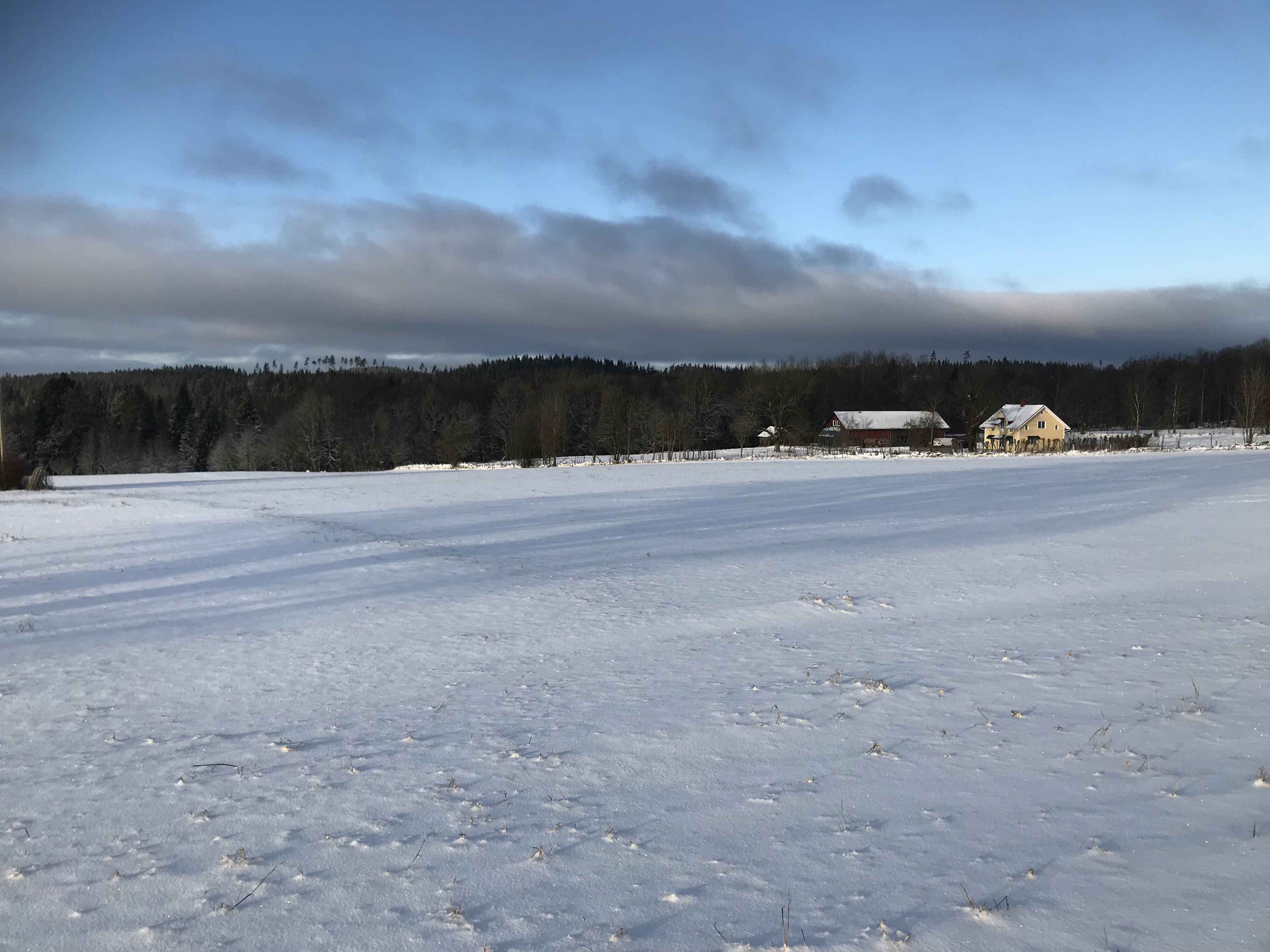 De vita vidderna och snön syns så långt ögat kan nå. Några människor gick att notera på gårdagens promenad men på Främgärde var det ödsligt, sånär som på en galande tupp och en skällande hund. Det som slår en under promenaden över Främgärde är hur högt beläget det är. Jag ser ända bort till Borhult och Hyberg(gamla gårdsnamn inom Brämhult i likhet med Främgärde) Undrar om de som brukar sin jord har tid och ork att beundra utsikten. Någon stund över har de säkert. Idag är det långtifrån alla som lever på småskaligt jordbruk. Undrar hur livet kan ha tett sig här 1830? Inflyttningen till städerna och emigrationen till Amerika hade ännu inte kommit igång. Med det sagt levde de flesta av de som bodde här på att bruka sin jord, kanske sålde de varor på marknader såsom hantverk och dylikt. Klyftan mellan staden och landsbygden var väldigt stor på olika sätt. Idag är det alltfler på landsbygden som har dragit in fiberanslutning och långtifrån alla lever på sitt jordbruk. Landsbygden är en viktig del av samhället som måste få fortsätta att leva!