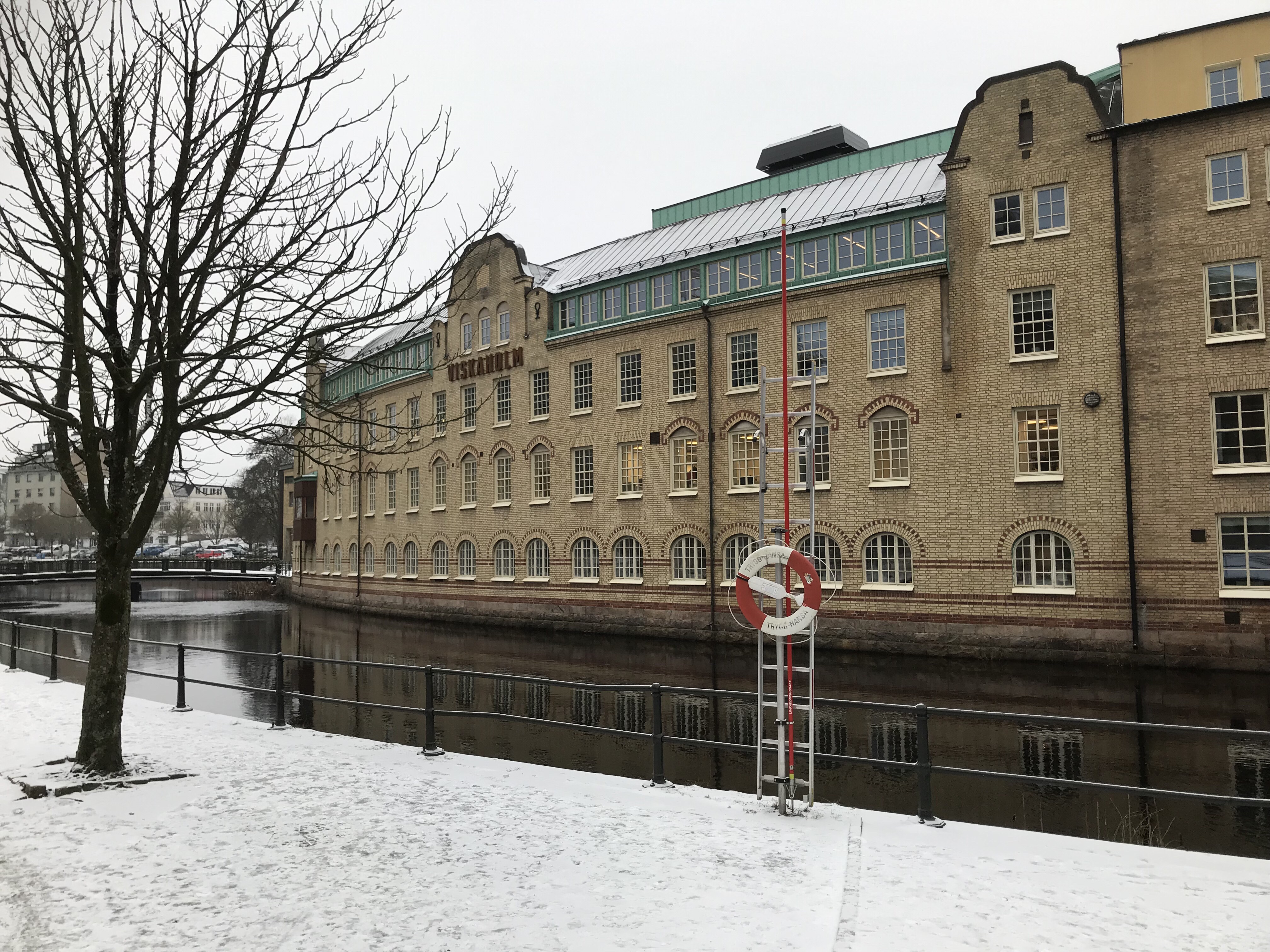 Likt en koloss för svunna tiders hårda arbete inom textilindustrin tornar den gula tegelbyggnaden på Viskan upp sig mot himlen. På många promenader har jag gått förbi här. Det var skottar och engelsmän som kom att vara drivande inom textilindustrin. Redan på 1700-talet kom ju ”Spinning Jenny” att utgöra embryot för den allt mer effektiviserade industrin. Säkerhetstänket vid denna tid var nog inte så stort och fackligt engagemang sågs inte med alltför blida ögon av de stora pamparna. Borås första moderna väveri grundades av engelsmannen Edvard Davies. Namnet Linds Färgeri passade förstås inte längre och Wiskaholm blev det nya namnet. Det ligger ju passande nog på en holme i Viskan. 52 engelska vävstolar inköptes till väveriet. 1863 kom amerikanska inbördeskriget att ställa till det för verksamheten, missväxt och lågkonjunktur spelade in. Samma år fick Davies försätta företaget i konkurs. En grupp av affärsmän kom på auktion att inköpa väveriet. Väveriet kom att bli en riktig framgång under andra halvan av 1800-talet. Borås Wäfveri AB blev nytt namn cirka 1912. I stort är byggnaden sig lik men förändringar inte minst i interiören men även exteriört gjordes 2019. I dags dato har exempelvis Ikkab och Nordea sina kontor här. Verksamheten är helt annan mot den ursprungliga men byggnadens historia kan man inte ta bort!