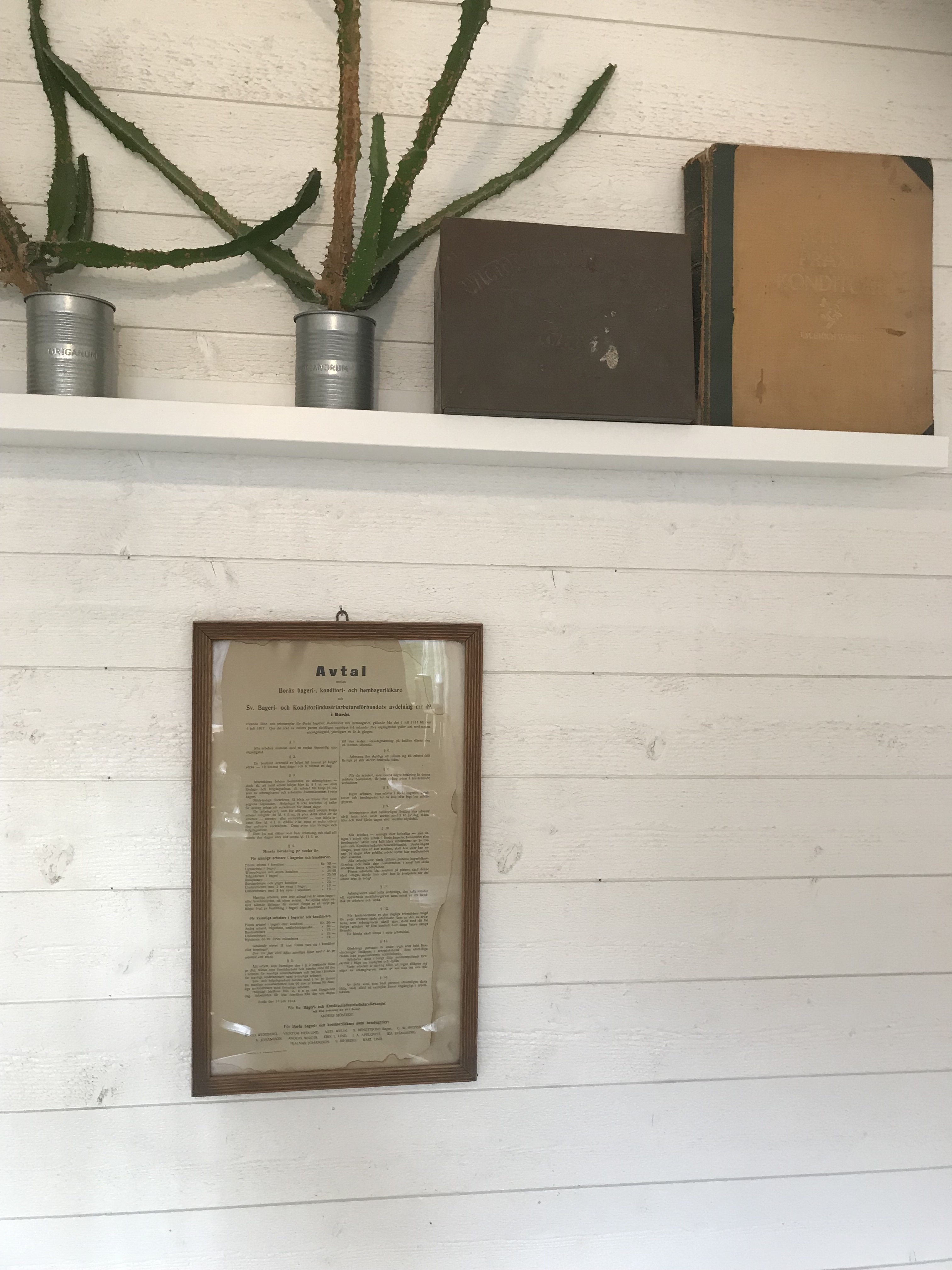 Gullkragen är alltid lika trevligt att besöka, den underbara interiören ifrån tidigt 1960-tal, den trevliga personalen och de goda bakelserna är något som väger tungt i bedömningen. Vid mitt senaste besök tog jag en närmre koll på det avtal som syns på bilden ovan. Det är något med gamla dokument som får ögonen att stanna upp ett slag och som blivande arkivarie(läser B-kursen i arkiv och informationsvetenskap) har jag märkt att jag medvetet eller omedvetet börjar gå in i den rollen. Något jag fann särskilt intressant är den åtskillnad som gjordes mellan bagerier, konditorier och hembagerier vid 1900-talets början. Ett bageri skulle mig veterligen primärt rikta in sig på bakning av matbröd, ett konditori ”kondis” hade mer fokus på sötebröd eller finare kaffebröd såsom tårtor, bakelser, bullar etcetera, sistnämnda bör rimligen ha sysslat med samma verksamhet som bagerierna men kan det ha skett hemmavid? Det låter minst sagt genuint med ett hembageri och på senare håll har det ju blivit väldigt populärt att baka sitt eget bröd. Har vi gått och blivit hembagare allesammans? I så fall kan ju de riktigt stora fabrikörerna av bröd så småningom avveckla sin verksamhet, nej så långt har det nog inte riktigt gått men visst är det godare med hembakat än industritillverkat bröd från ett löpande band!